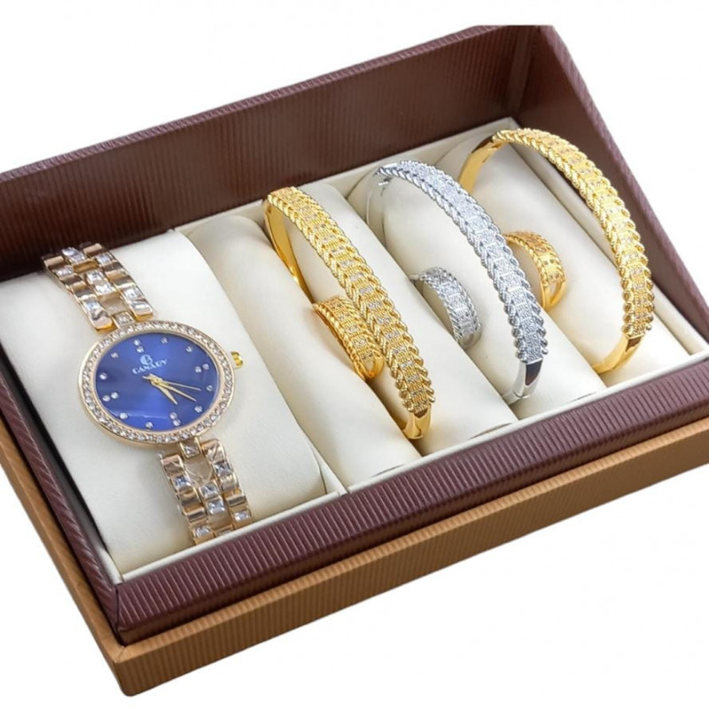 - اسم المنتج: طقم إكسسوار نسائي ساعة مع أساور أنيقة